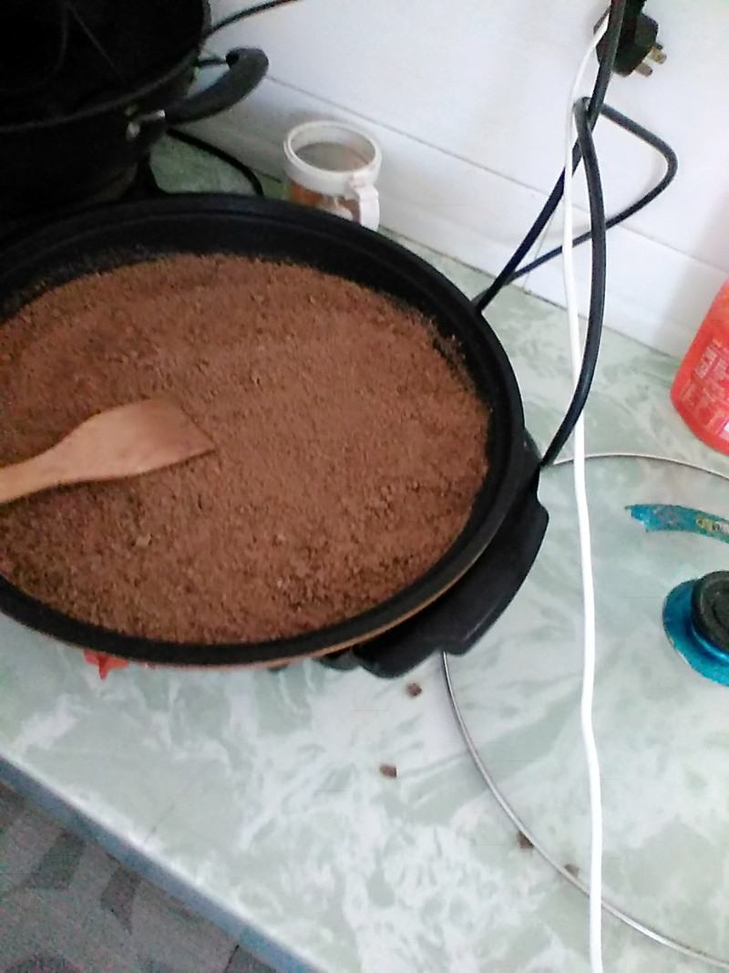 在去水汽的过程中千万要小火,不要熬糊了,那样会苦的