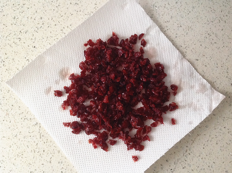 2、蔓越莓干也可以用温水浸泡,太大可以切小,如果用酒泡也可倒入黄油中并相应减少蛋液,避免浪费。