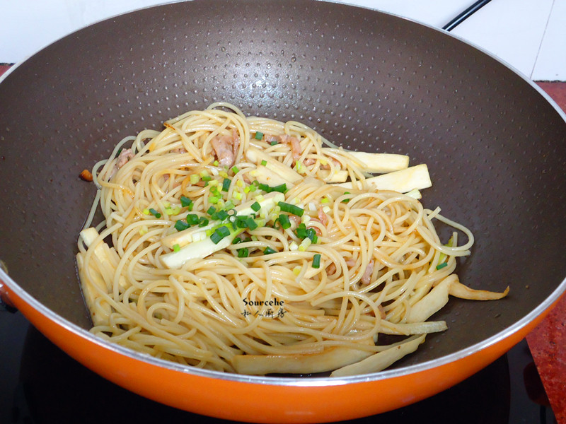 茭白只有中国和越南培养种植味蔬菜,含有丰富的蛋白质、脂肪、糖类、维生素等。茭白就有清湿热、解毒,补虚健体等功效。意面是意大利的一种面,最接近中国饮食习惯,用意面、茭白、瘦肉,炒一道面,中西结合,又符合中国味道,还有西方氛围。