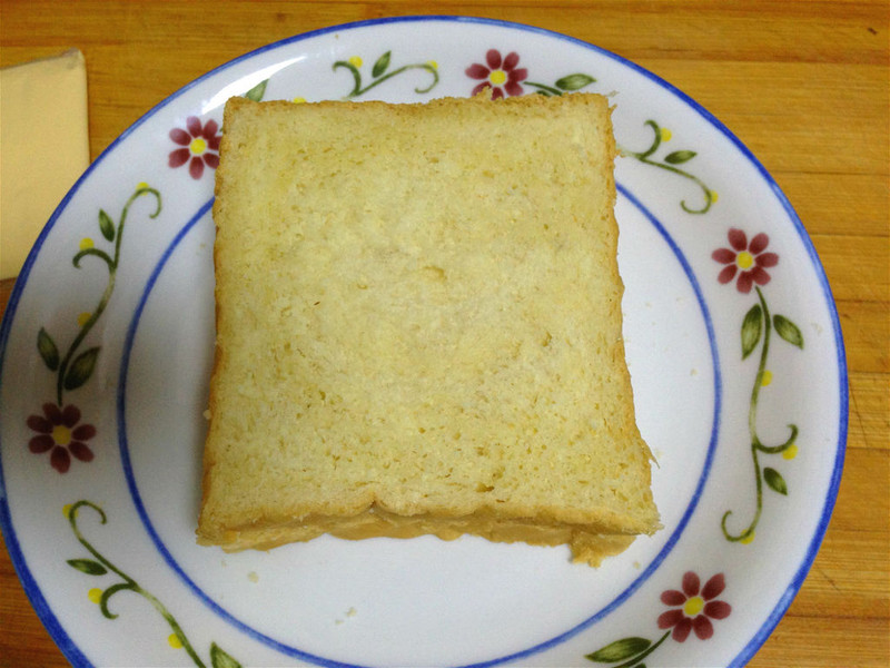 3:煎制是时候要用小火,做的精致一点的,可以切去吐司四边。