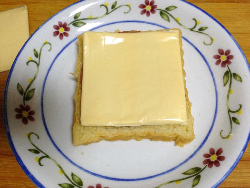 1、火腿稍微切薄一点,不然夹起来吐司片容易移动,也可以用牙签固定。