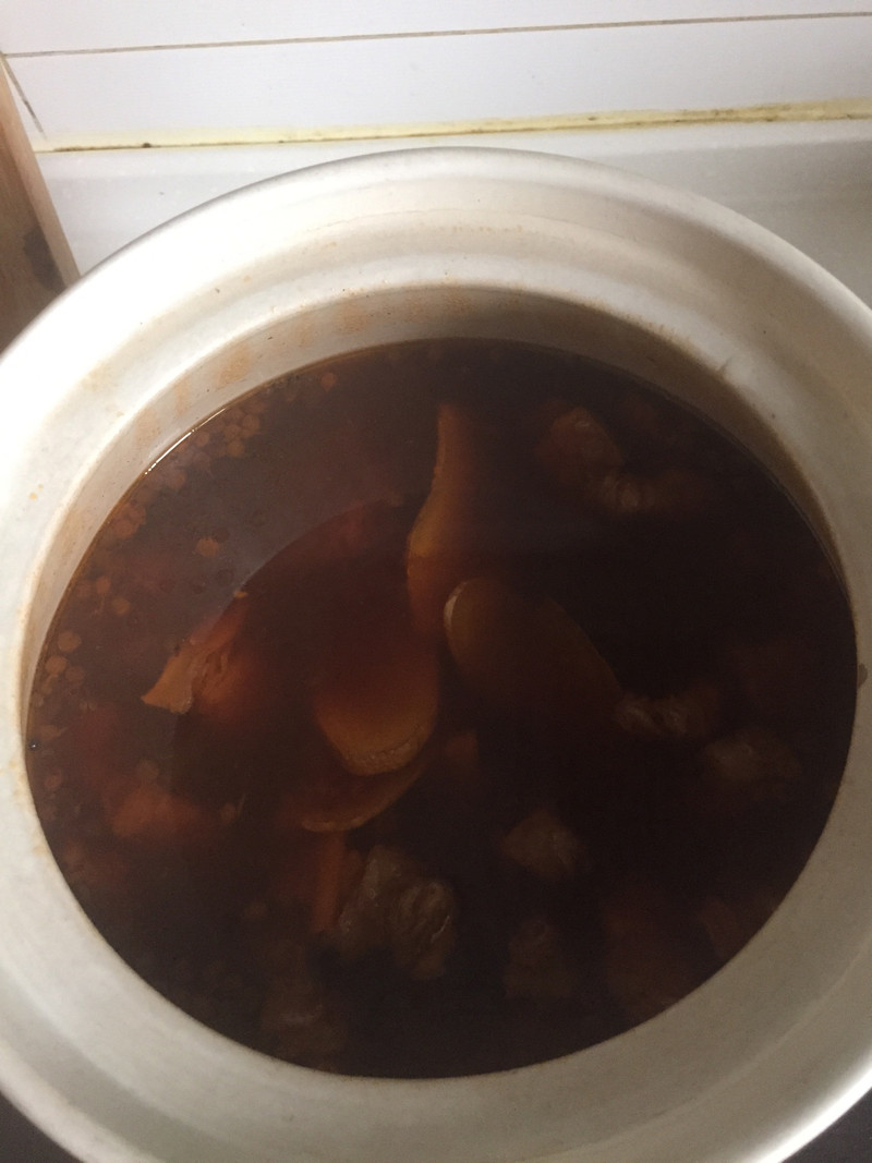 可以再放些土豆丁 胡萝卜,西红柿炒一下放到牛肉汤里是为了汤汁更浓稠,牛肉汤里一定要加热水味道才好!