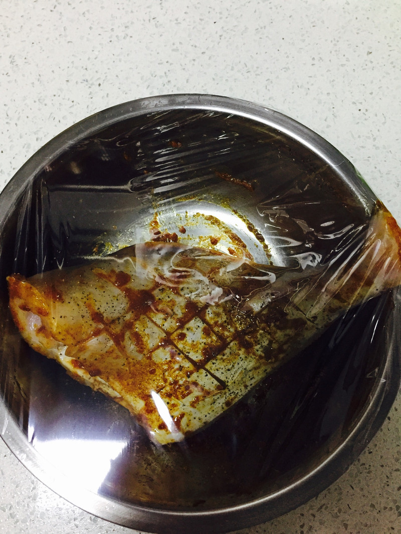 背后的故事,我想想,应该就是逛超市看到大只的马面鱼,想着没有刺,要多吃点。买回家不知道怎样烤,最后用懒人办法,新奥尔良调味料,直接腌制,烤前加孜然,味道很赞,特别简单噢