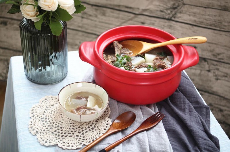 白萝卜不仅能够吸收肥腻的脂肪和肉腥味,还能消食积、化痰、宽中的功效,能够中和掉吃肉给肠胃带来的消化负担。陶瓷炖锅炖肉和高压锅炖肉的区别在于外形不散,肉却熟透炖烂还特别容易消化,超强的蓄热能力在关火后锅体继续释放热量,让味道进入到肉里,非常美味。