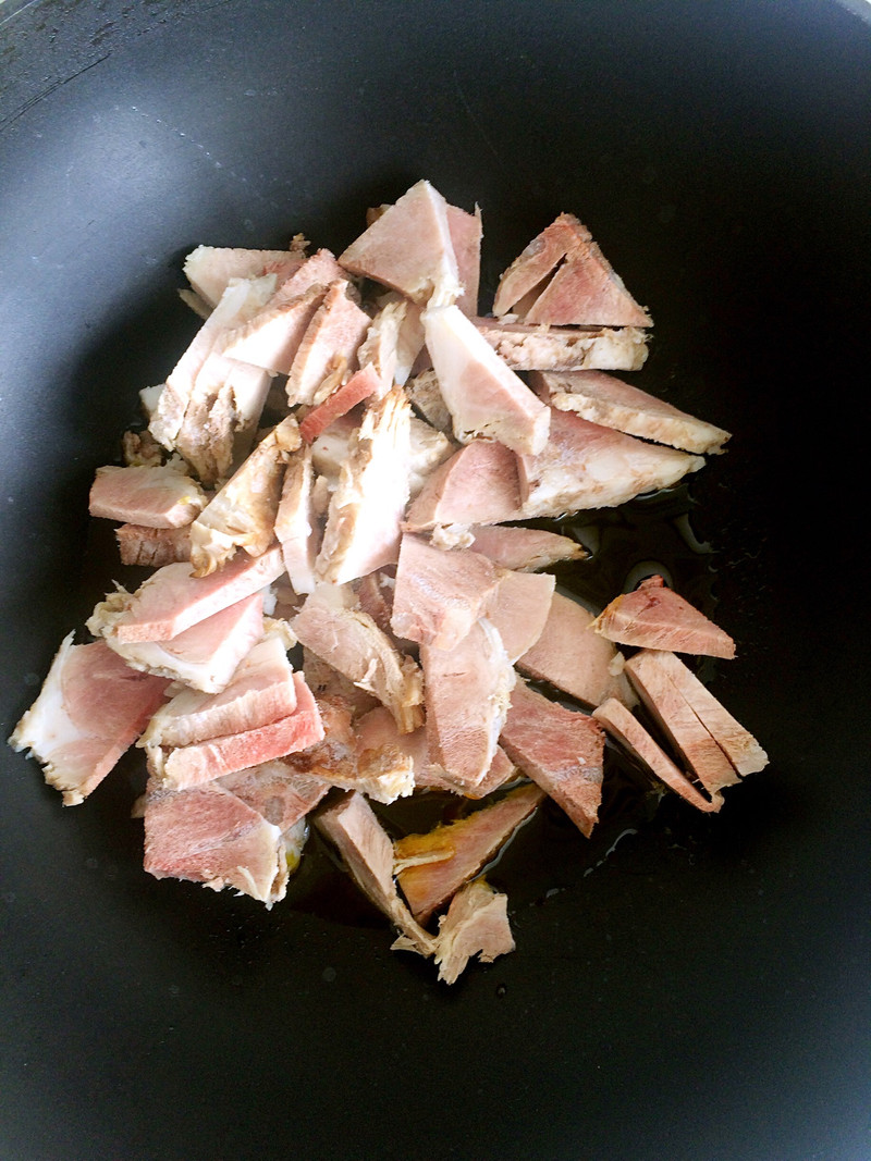 可以放五花肉,因为家里剩的熟肉,所以直接放的熟肉。