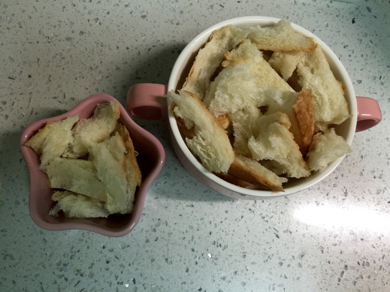 女儿喜欢吃三明治,不喜欢土司边,每次都得切掉,切掉的土司边做成蛋奶土司布丁,又是一份美味的早餐,一点都不浪费哦!