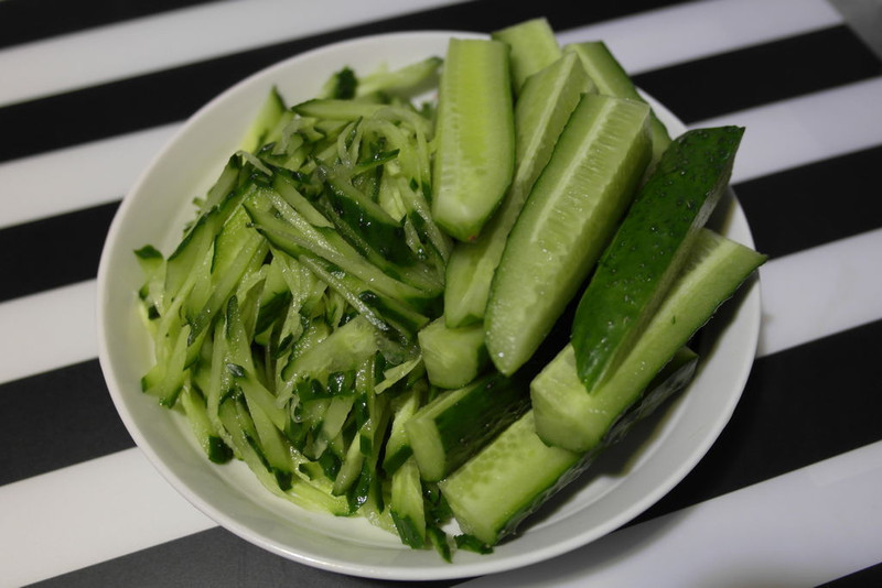4.菜码儿,也就是炸酱面配的青菜,一般是黄瓜、黄豆、绿豆芽、大白菜丝、卞萝卜丝这些,大家可以按自己的喜好选择我,最简单的家常吃法就是黄瓜丝和大白菜丝