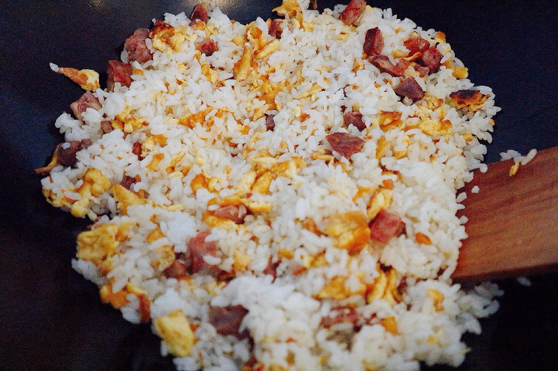 早上,想睡懒觉,所以就迅速先用电饭煲煮一锅米饭。睡醒了再起床,就可以切好培根之类的,加些蔬菜,打两个鸡蛋,做一份简单而美味的蛋炒饭。