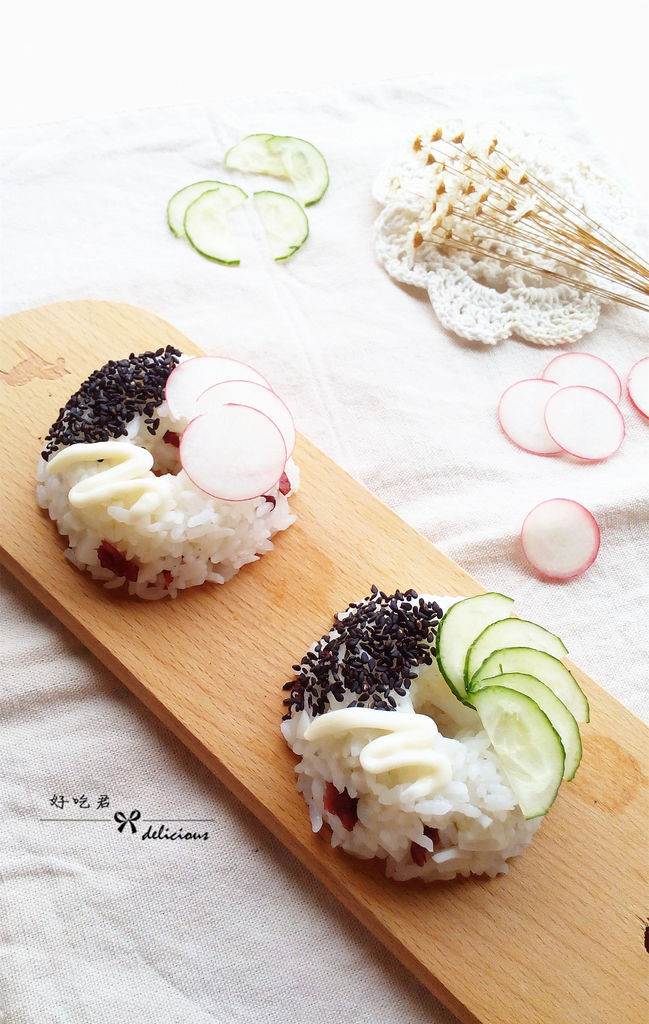 把寿司做成甜甜圈的模样怎么样?再把原来卷到里面的食材都放在外面怎么样?O(∩_∩)O哈哈~今天来了一款甜甜圈和寿司的合成版——蔓越莓寿司圈~