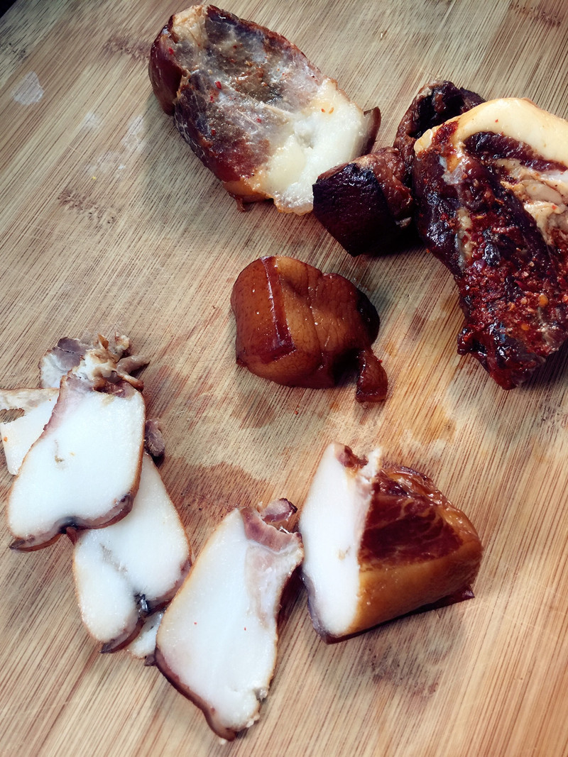 闺女卖腊味,微店只能按斤卖,结果切下许多头尾边角料,我就让阿彬做一次煲仔饭。