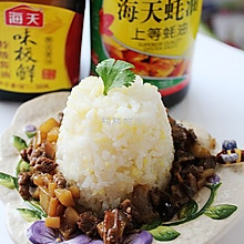 样子美美滴牛肉饭。有蚝油的鲜美,和味极鲜酱油的清甜,黑胡椒的独特香气;