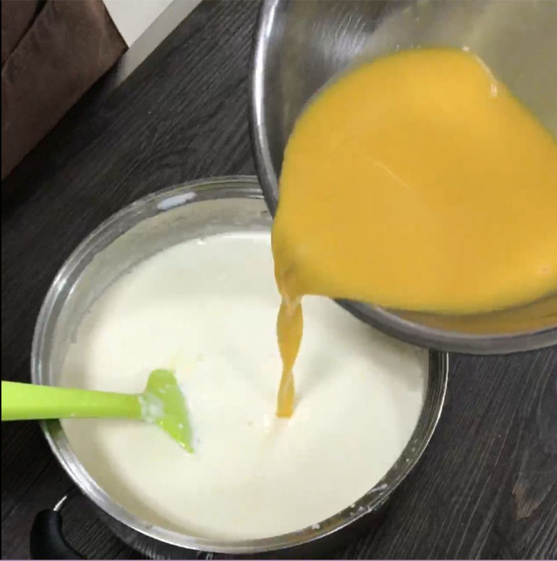 1、牛奶液要冷却至不烫手再倒入鸡蛋液。