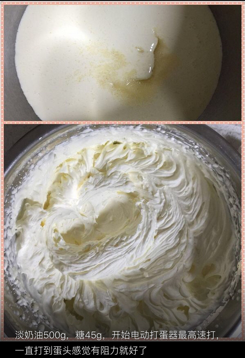1.打奶油之前,最好将盆和蛋抽放入冰箱冷藏半小时,这样打起奶油来更快!2.奶油别打过了,不然很粗糙.3.6寸的蛋糕做法,我之前发过,所以这次我就只简述了做法