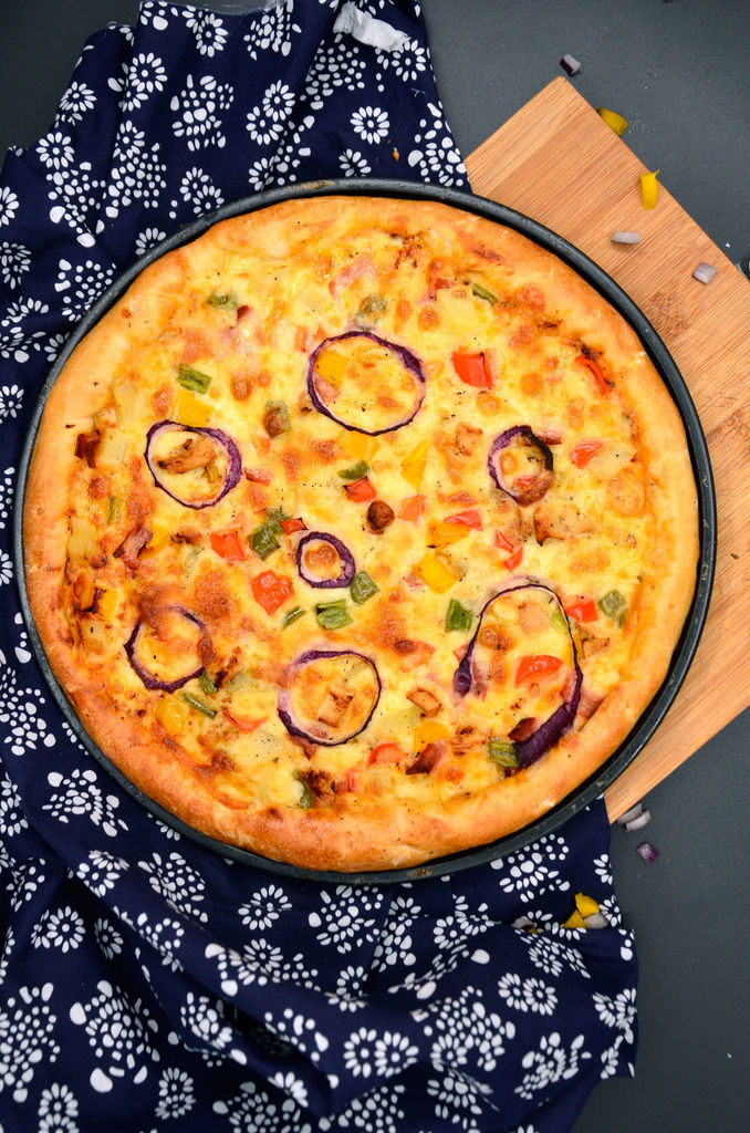 超级至尊鸡肉批萨来啦,丰富的馅料,香脆有韧性的面包底,诱惑抵挡不住!
