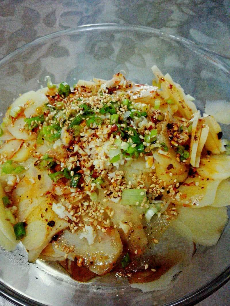 正宗四川口味,四川有一个路边小吃叫“狼牙土豆”(大概做法是将土豆切块或长条形油炸后加调料而成,老少皆爱)。四川凉拌素菜普遍选择折耳根、豆芽、胡豆、粉丝、海带丝等蔬菜,选择土豆做主材也算一个创新,好吃与否大家只要亲自动手做一次就知道了(上传时间17年1月6日)