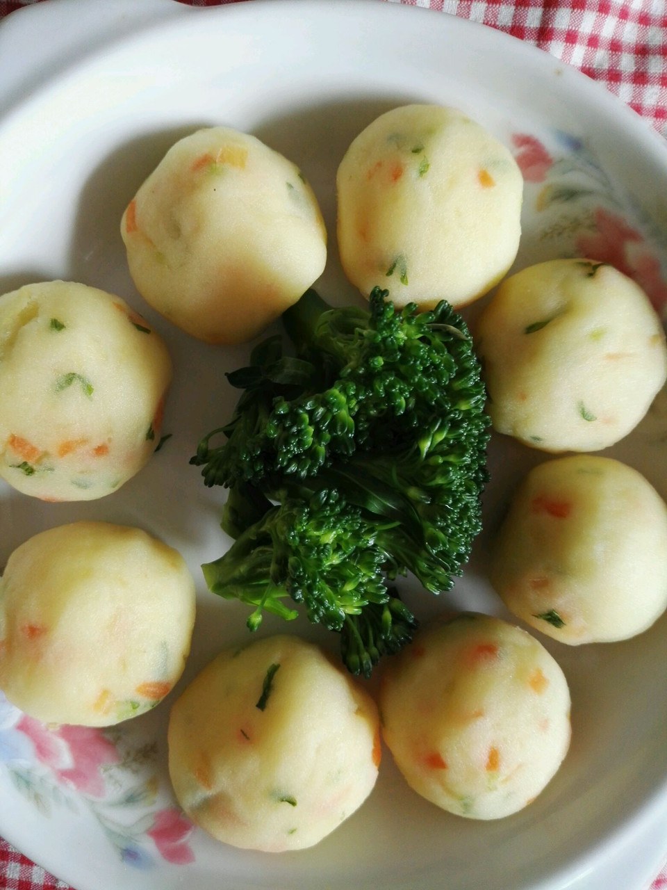 蒸过的红萝卜可能会有点水,要将水去掉,不然会占手,做的球会不好看