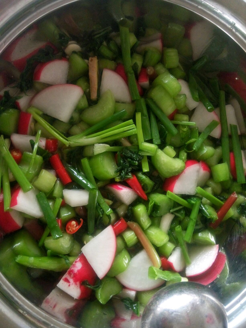 泡菜承载着我很多关于外婆的记忆,外婆有一双巧手,会做很多很多好吃的,明年外婆就满90了,但是很遗憾,我一直没能向外婆学到一门手艺,现在也不忍心让她老人家费神教我这只笨鸟。还好我有一位巧手的姑妈,最近不停的在向姑妈取经,这个泡菜就是姑妈教我的。