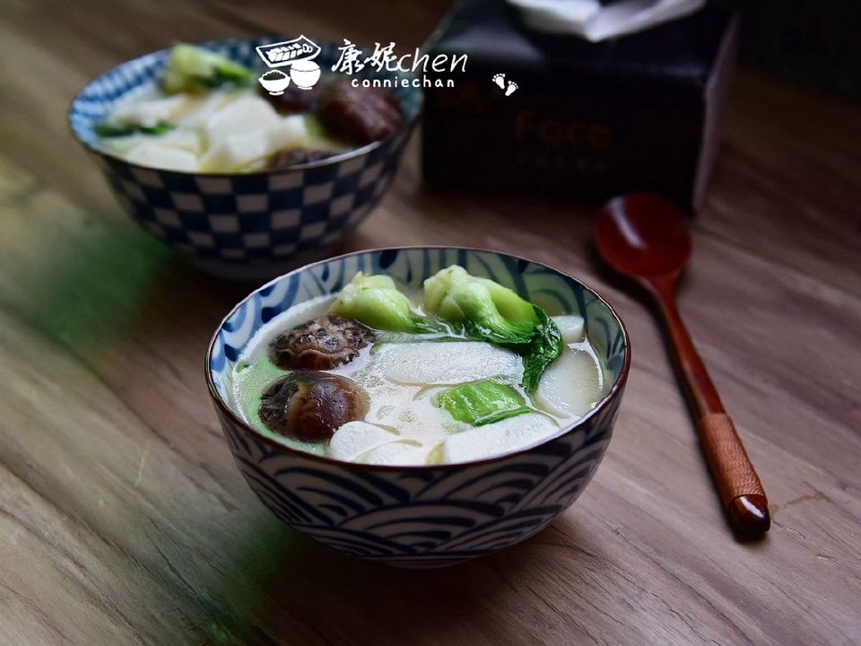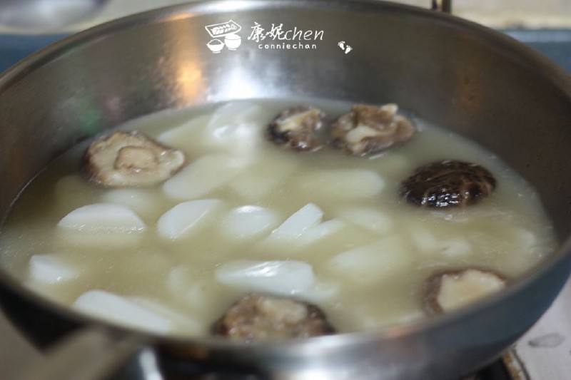 我用1斤骨头熬了一锅浓汤,煮年糕汤就用这锅骨头汤,再浸泡香菇和洗净的青菜,做成一碗年糕汤,清淡却很有滋味的年糕汤,格外好吃。年糕汤在过年来一碗很应景,步步高升,年年高,在平日准备一碗年糕汤当早餐吃得饱又吃得好。