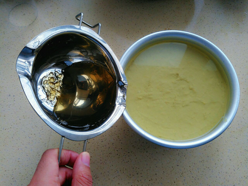 制作慕斯表层的时候,一定等到蛋糕体凝固后再做。