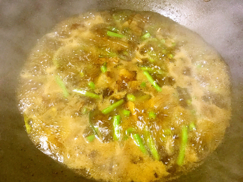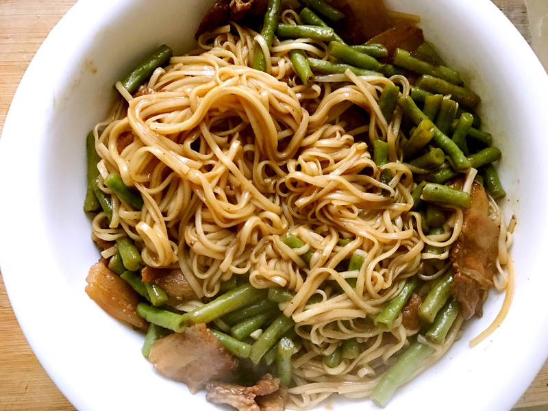 豆角不容易熟 要多加些水煮一会 不然汤干了豆角还没熟 在下面条就容易糊锅了