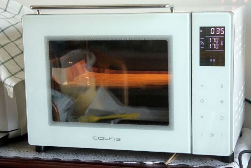 5、 垫了烤布烤,烤布的这一面会很光滑,烤色和平整度都很赞,卷起来很漂亮哦。