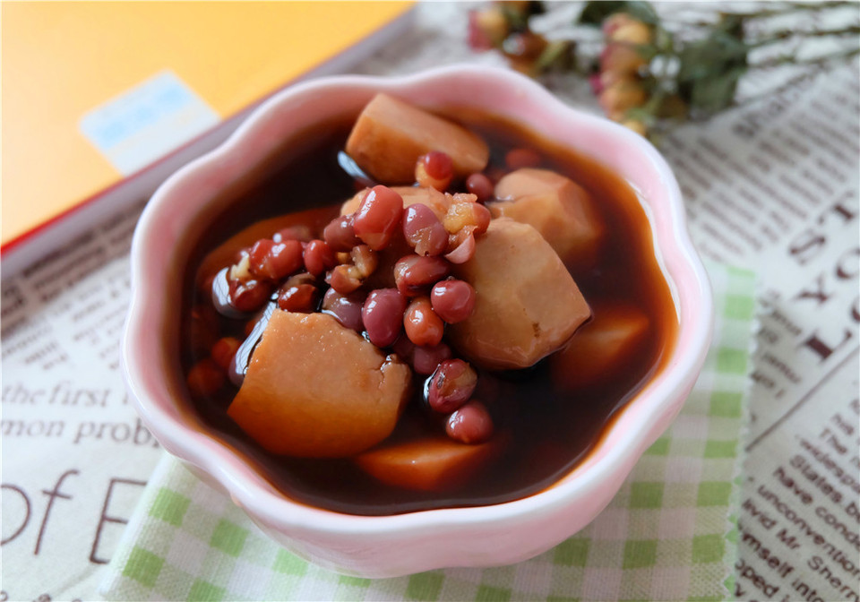 这碗红豆芋头糖水,是我从一位微博好友那学来的,喜欢红豆,喜欢芋头,却从来没想过把它们组合在一起,配以红糖,煮出甜蜜的味道。试了一下,果然软糯香甜,很好喝,红糖的量放的不多,有些甜丝丝的味道,喜欢。