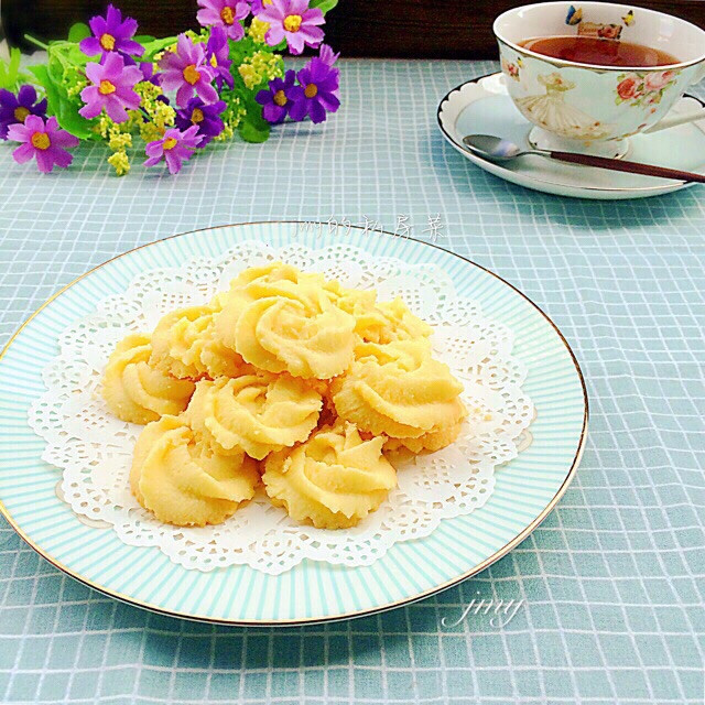 黄油要充分软化再打发,要不然会造成面糊偏硬,比较难挤,刚烤好后的曲奇饼干是软的,千万不要去移动,等凉了就会很酥脆了,没吃完的曲奇饼干要及时放铁盒里存放,以免受潮后变软。