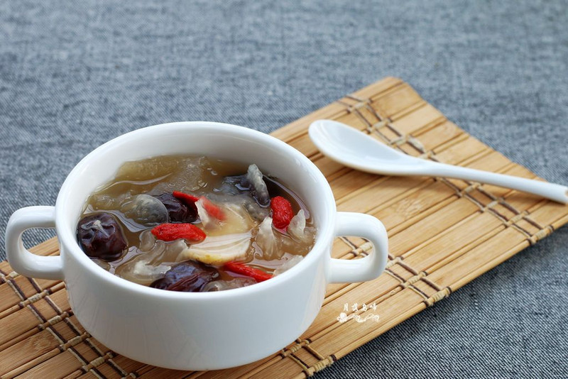 银耳的营养成分丰富,美容养颜,补脾健胃,清凉除燥,对虚火上升、烦躁失眠,食欲不振或虚不受补的人有良好的食疗效果;百合和莲子具有养心安神,润肺止咳的功效,红枣既有缓和药性的功能又能补气养血,都是传统的保健食品,多吃对皮肤好,健康有光泽!