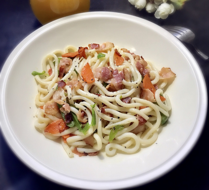 培根炒乌冬面的做法