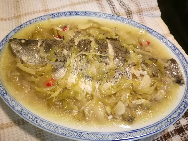 为了偶尔吃酸菜鱼,花花家的泡菜坛子里总是放着几块久泡的酸菜。不同于拿鱼块或者鱼片来做,花花喜欢拿整鱼做,用桂花鱼或者鲈鱼,会鱼嫩汤鲜。酸菜要选芥菜叶根比较好,口感脆嫩,而且不会满盘子都漂着打结的菜叶丝。