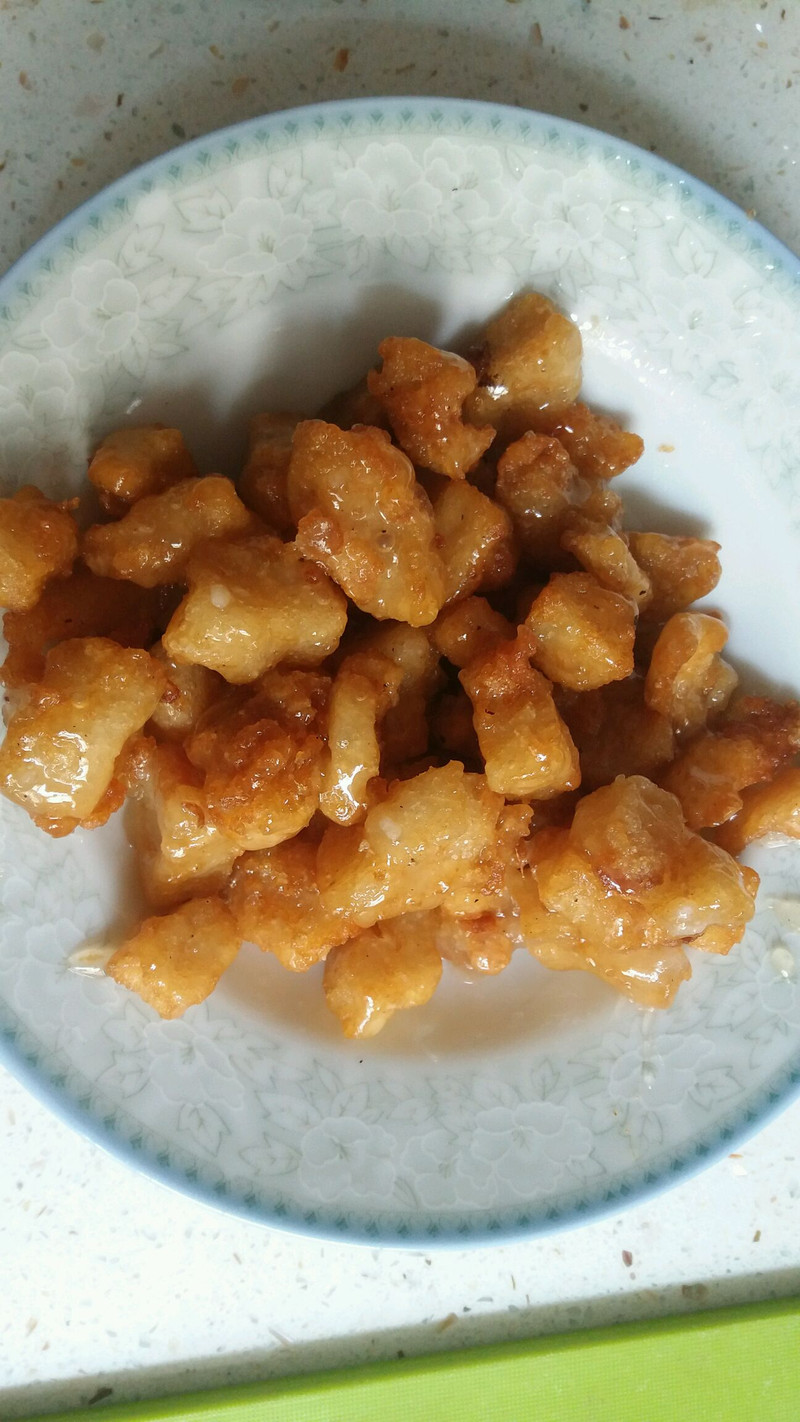 这道菜最难的就是熬糖了,火小了糖就翻砂了,火大了糖就糊了,所以要把握好火侯,用中火,保证不糊就行。熬糖时水不要放多,放多了,就需要更多的时间把水蒸发出来。