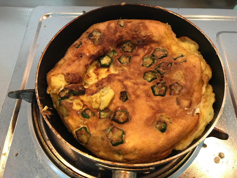 鸡蛋蓬松的口感大概是任何肉肉都无法替代的。营养丰富的秋葵加上鸡蛋作为早餐的主食,真是极好的。
