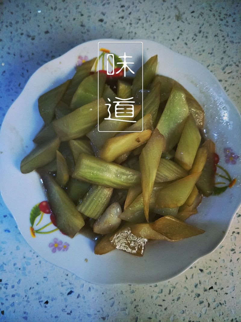 2.莴苣生的也可以吃,因此汤汁粘稠即可出锅。如果家里有老人牙口不好的话,那么可以盖上锅盖烧3-5分钟。