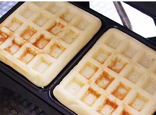 2.制作华夫饼前,一定要将华夫饼机加热两分钟。如果预热不够,面糊容易粘在模具内