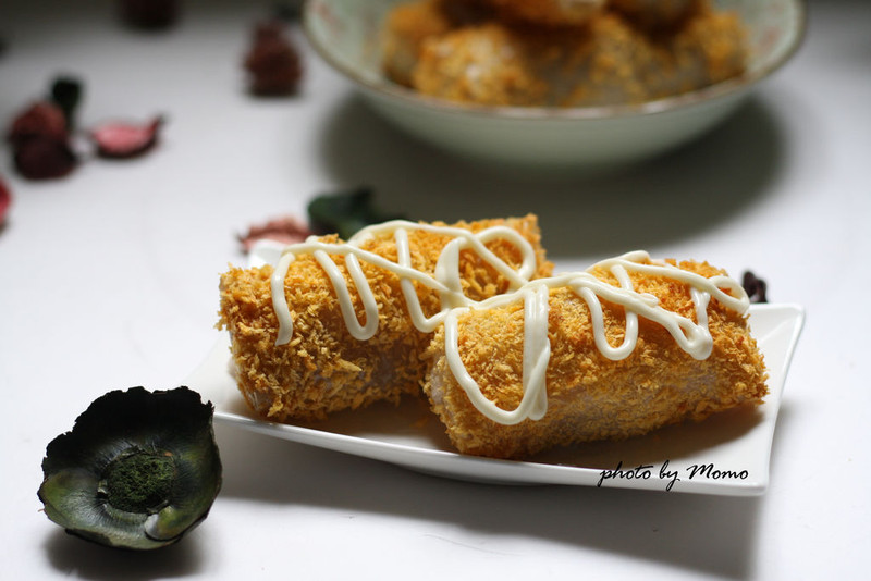 4.油炸的话两面要翻一下,因为都是熟的,不用炸久。