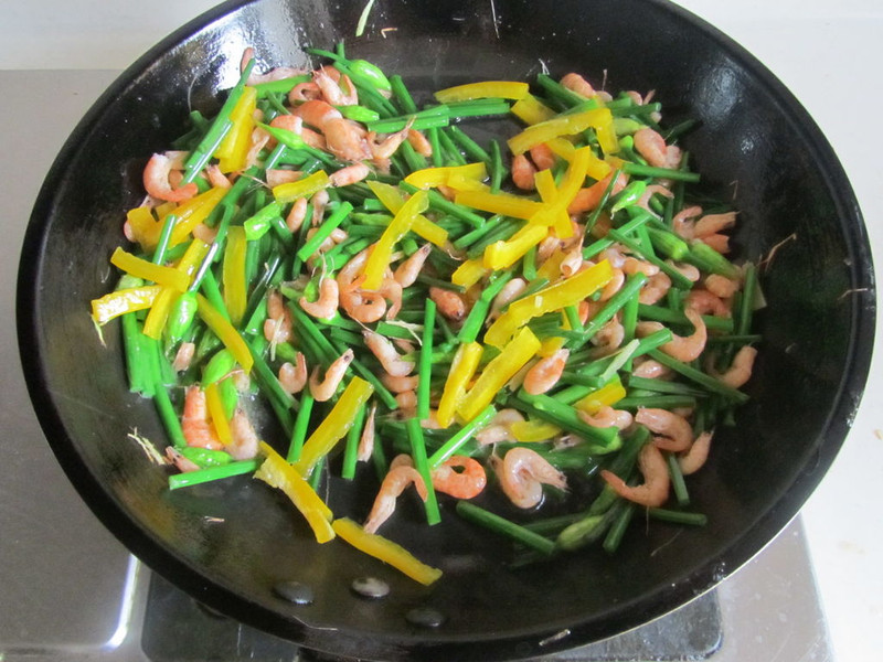 1. 炒河虾一定要放入些姜丝搭配煸炒去除凉性; 2. 韭菜花需要炒的时间长点, 所以可以先将煸炒的河虾盛出来; 3. 彩椒生吃都可以,因此只需出锅前放入, 加入点彩椒为菜品增色。