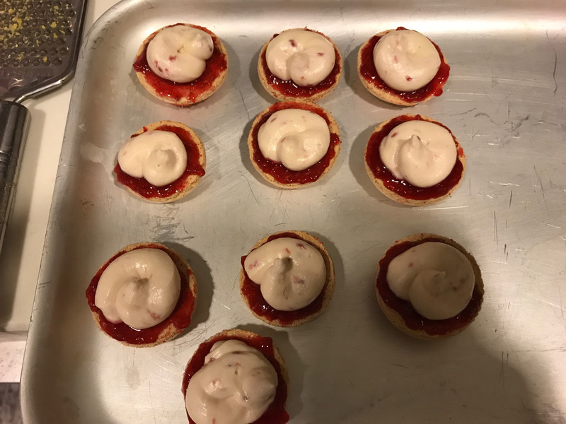 终于来到组装环节了,心好累有没有。先在马卡龙壳上撒上冻干草莓粉