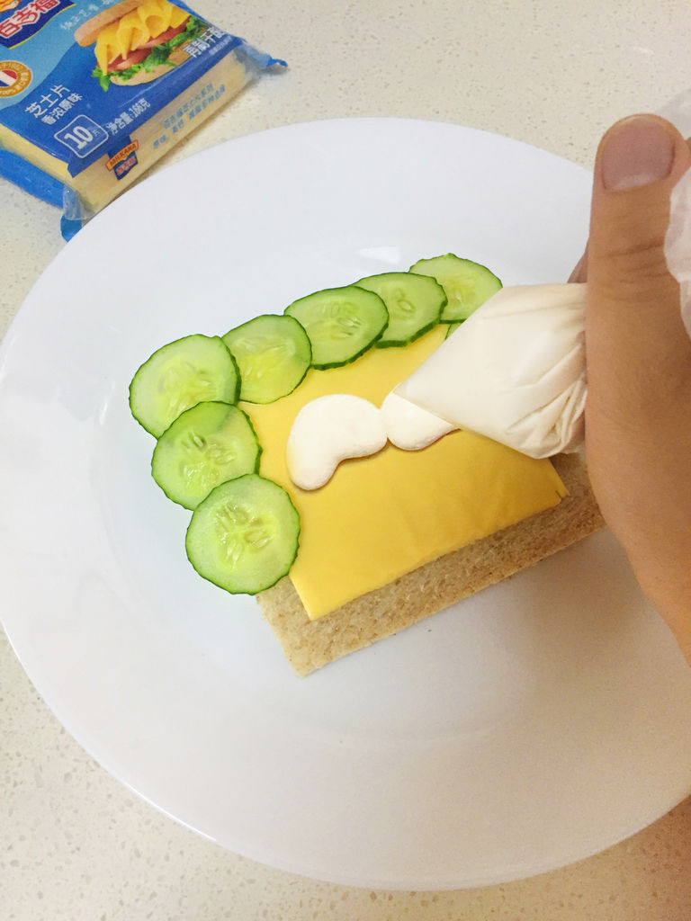 没有颜值,哪来的食欲,造了个贱贱的小眼神儿的萌娃三明治。。。。。。