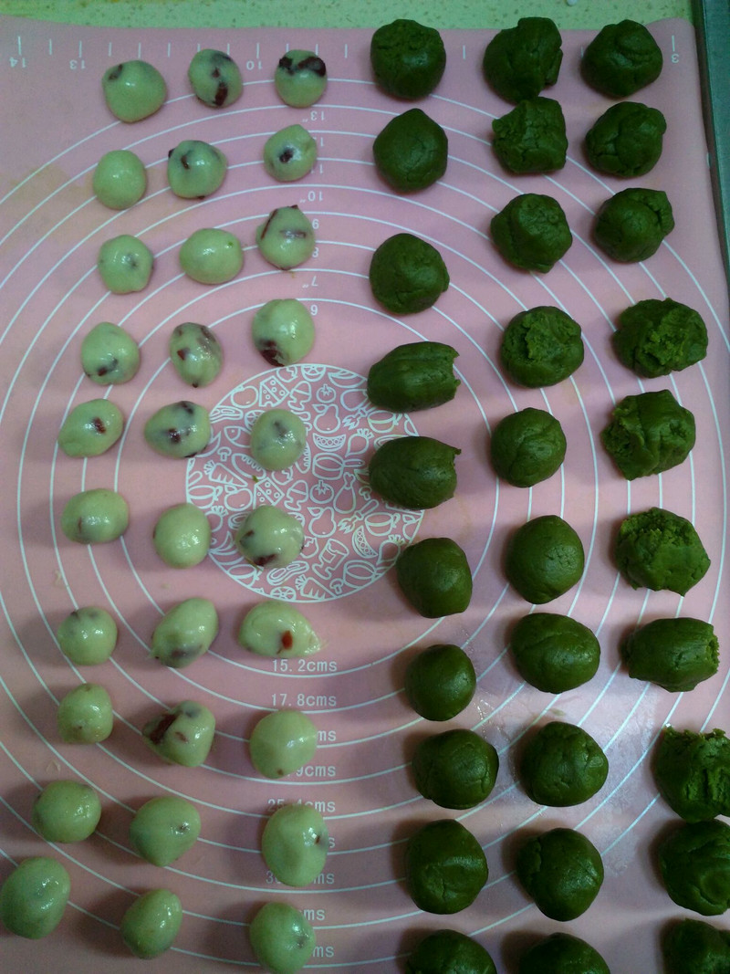 3,麻薯馅和抹茶曲奇皮可以都称一下总重量,做20个就除一下,做30个就÷30,平均数差不多就行