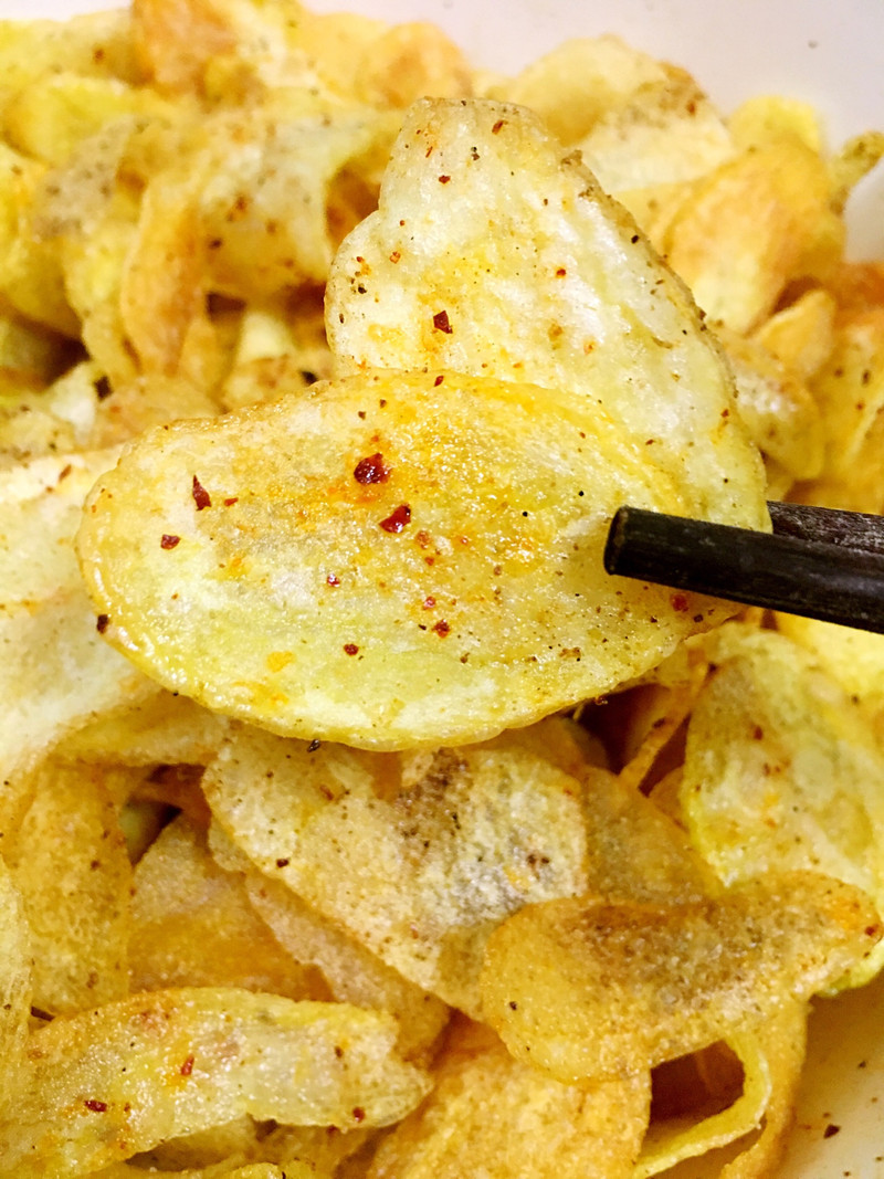 中午炸了薯条 锅里还盛着油 玩手机时看到一个做薯片的方子 很简单 想着好几年前用微波炉做的薯片 孩子们至今仍念念不忘 搬了新家 微波炉也退休早已丢弃 今天偶尔看到的方子 锅里剩下的油 好吧 试试油炸的薯片 虽然热量有点高 但也算是种回忆 美味的回忆