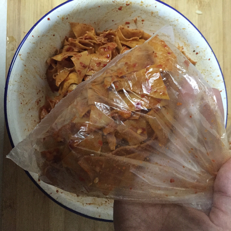 长条豆干也是一样步骤,主要是摩擦摩擦,揉搓揉搓哈哈。