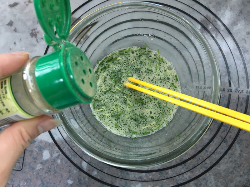 因为是好几个月的心血,我也舍不得全割下来,就把比较“壮”一点点的割下来,因为量真的很少,也不适合做我们最爱吃的韭菜鸡蛋饼,就做成厚蛋烧了。