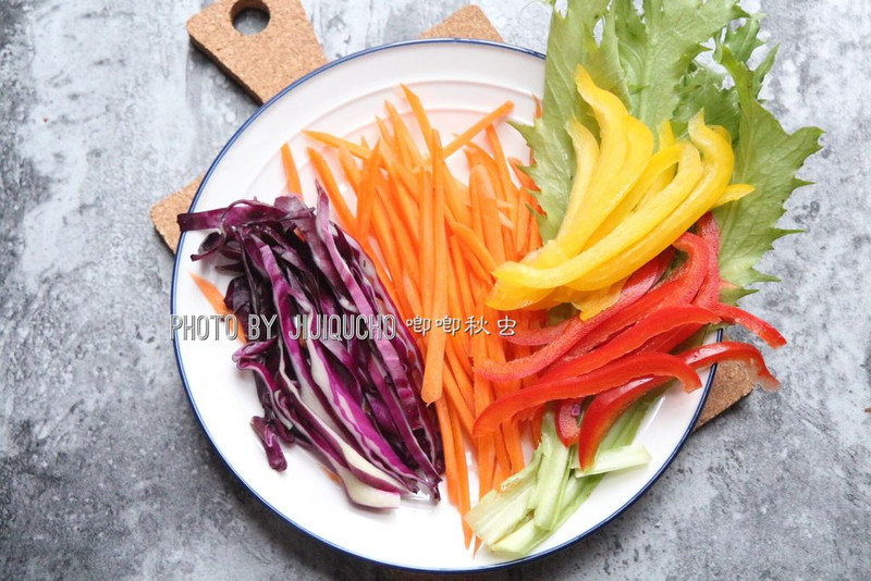 3里面的蔬菜可随意搭配,习惯性的喜欢将彩椒氽水,因为给宝宝吃的东西不敢用生的,大家喜欢生吃的可以不用氽水。