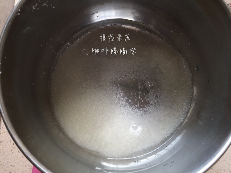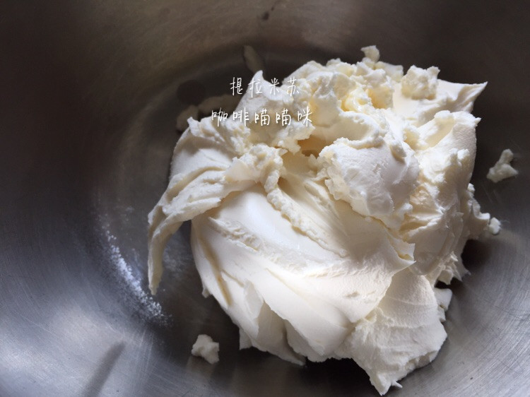 蛋黄糊与糖水混合后一定要放凉透,不然会烫坏马斯彭卡芝士和奶油