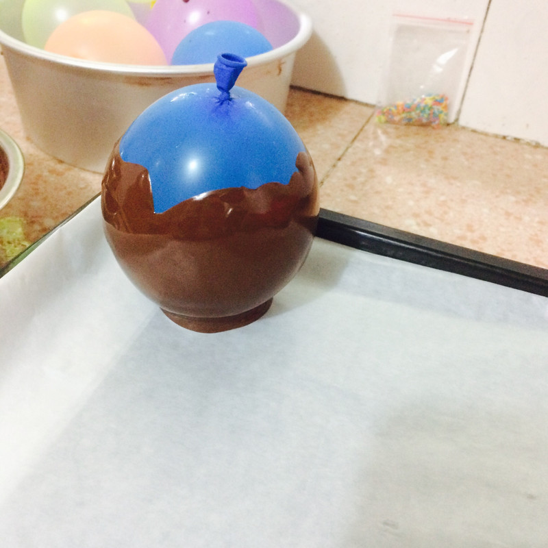 1、巧克力一定要凉了才淋在气球上,否则气球会爆掉,会把你厨房炸掉哦