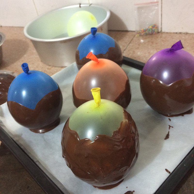 2、如果气球有些粘在巧克力上没关系,拿牙签和钳子钳出来就好哦