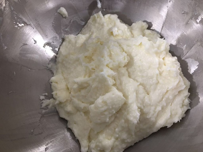 立即把蛋乳泥放入坐在冰水的碗里冷却,过程中一直搅拌,使蛋乳泥保持细腻光滑的状态。冷却好后用保鲜膜盖好放入冰箱冷藏。