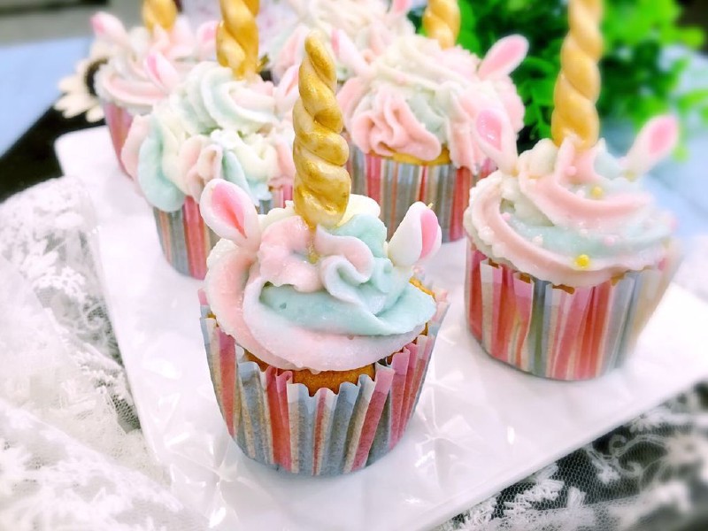 用北海道戚风杯子蛋糕+卡仕达酱内馅+奶冻裱花+翻糖造型几种简单的技巧完成了这个独角兽杯子蛋糕成品,看似麻烦,其实每个步骤都很简单,关键是在做的过程中用心去体验各种美好~