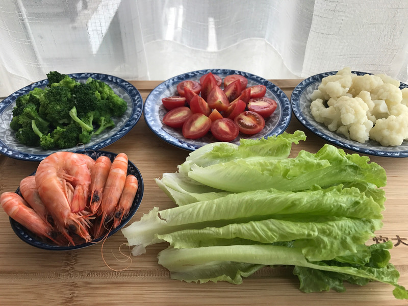 今早买菜归来,才惊觉明日便要送你出行!10来天说长不长,说短不短,够我想念你,够你馋海鲜。就着鲜甜的花菜做个虾仁沙拉,原汁原味,存在你记忆里,聊解馋念