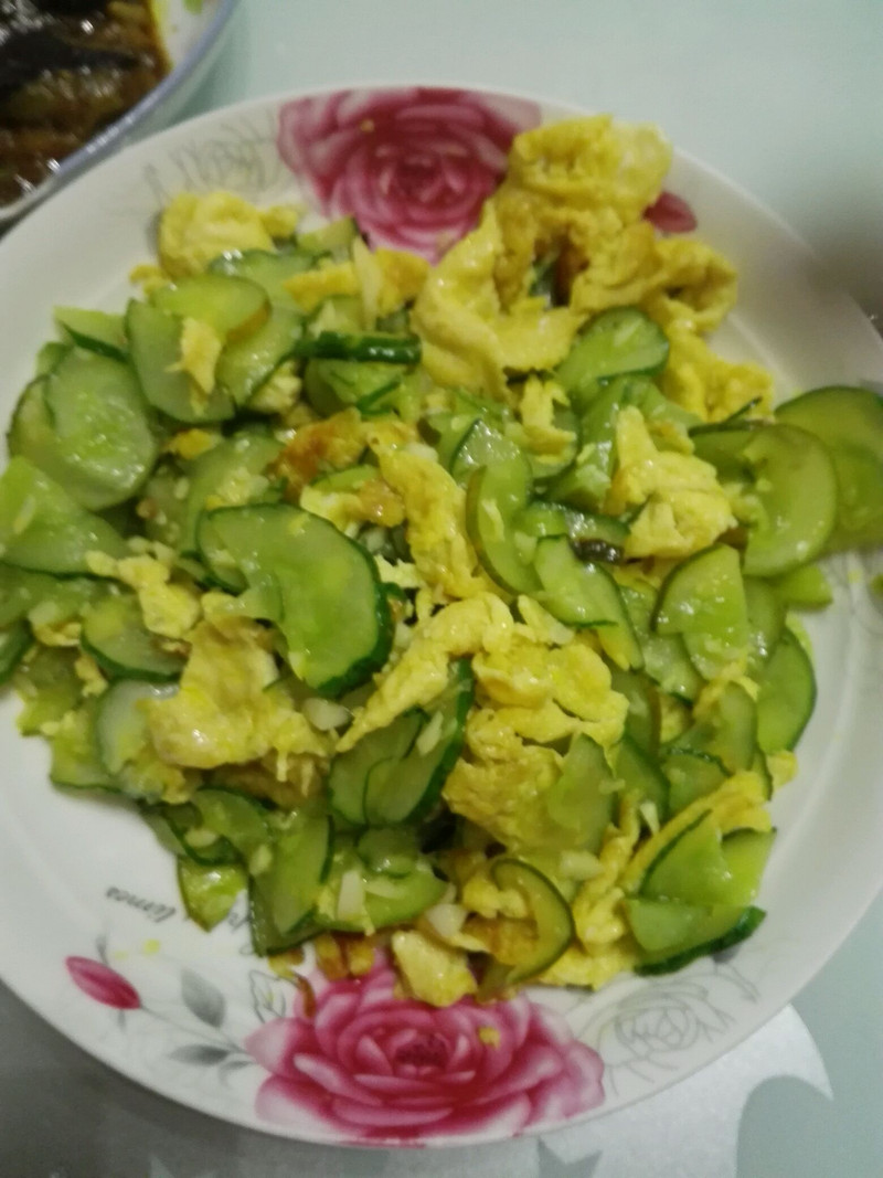 就是要快速翻炒,放了盐后再快速炒,然后,放蒜,出勺!以免把鸡蛋和黄瓜炒老了!